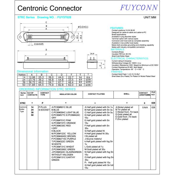 Male Solder 50 36 24 14Pin DDK Champ Centronic Ribbon Connector with Hex Nuts Certified UL
